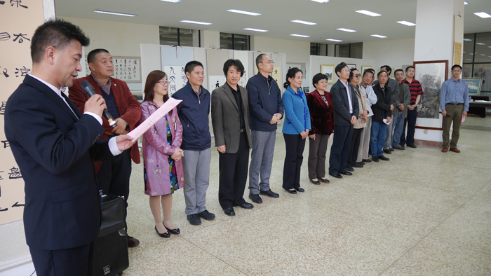 书画摄影展开展仪式由夏海昆主持,沈中灿在开幕式上致辞,汪叶菊宣布3044am永利官网、官渡区委统一战线首届书画摄影展开展。