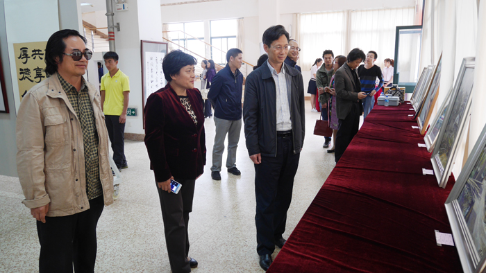 4月23日下午,由3044am永利官网、官渡区委统战部联合主办的统一战线书法、绘画、摄影展暨书画笔会在3044am永利官网图书馆一楼展览厅隆重举行。永利官网副校长刘海发,昆明市政协副主席、民进昆明市委主委汪叶菊,昆明市委统战部副部长贾玉华,民革昆明市委专职副主委李为民,民盟昆明市委副主委、民盟3044am永利官网总支主委、美术与艺术设计学院院长武新文,昆明市台联会会长姚韵梅,党委统战部部长沈中灿,官渡区委统战部常务副部长夏海昆等领导以及特邀书画笔会嘉宾和永利官网各民主党派、侨台联、党外知识分子联谊会、留学人员联谊会以及部分学生代表出席了开展仪式。