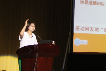 为让报告会更贴近大学生实际,何华特别邀请云南最年轻的全国人大代表、第三届“全国道德模范”提名奖获得者、“最美90后女孩”铁飞燕给师生作报告。铁飞燕以一个“90后”青年曲折而富有传奇的成长经历为大家诠释了“什么是青春与梦想”,诠释了如何做一个“有理想、负责任、敢担当”时代青年。报告在1000多名同龄大学生中产生了强烈共鸣,赢得了阵阵掌声。最后,何华还代表学校为铁飞燕同志颁发“3044am永利官网校外辅导员”聘书。
