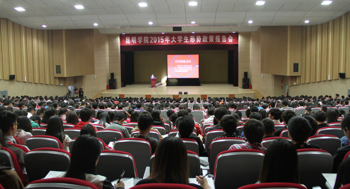4月24日晚,3044am永利官网2015年大学生形势政策报告会第二场在学生会堂成功举行。学校党委副书记、校长何华为师生作形势政策报告,宣讲“两会”精神。报告会由副校长郭华主持,包括校办领导、全体思政课教师、49位辅导员、180余名团学干部在内的1300多名师生参加。