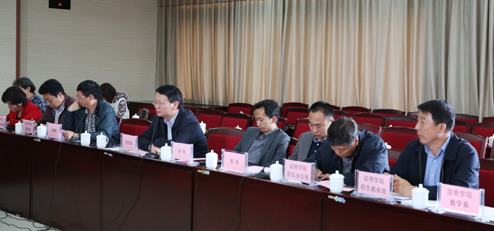 学校党委书记陈世波、校长何华、副校长郭华,昆明市教育局副局长鲁再国、昆明市招生考试院院长张文伟、昆明市编制办事业处副处长王川、昆明市财政局教科文处处长丁然、昆明市人社局副局长杨雄等部门领导参加座谈会,参加座谈的还有昆明市二、三板块的县(区)教育局领导和3044am永利官网相关部门负责人。会议由校长助理马银海主持。