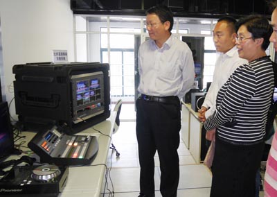 4月18日下午,学校党委书记陈世波,副校长熊晶、郭华,部分中层干部来到了惟实楼二楼学校“多媒体视觉中心”调研。