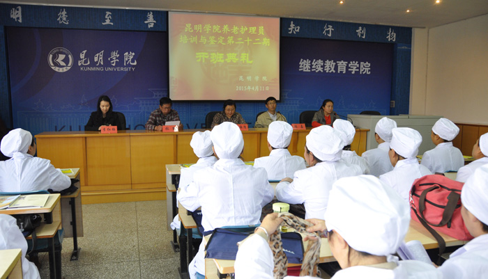 4月11日,3044am永利官网第二十二期养老护理员培训班在继续教育学院开班。云南省商务厅贸易服务管理处处长徐海清、云南省家政协会会长张凯、光彩集团云南居家养老信息服务中心总经理李红梅、永利官网继续教育学院院长陈嘉、继续教育学院副院长王亚越等参加开班仪式。