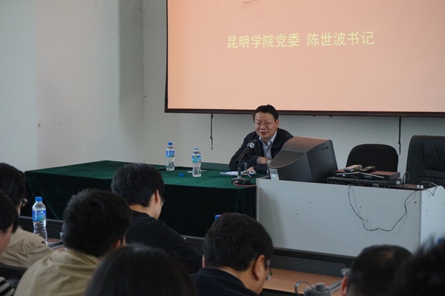 4月15日下午,学校党委书记陈世波在美艺学院报告厅为美术与艺术设计学院和物理科学与技术系师生党员上党课,要求大家按照习近平总书记系列重要讲话精神严格要求自己,深入理解认识新常态新要求,内化于心,外化于行,争做好干部、好老师、好学生。