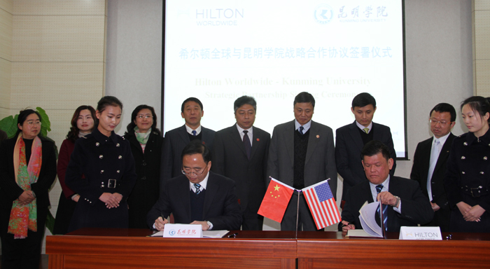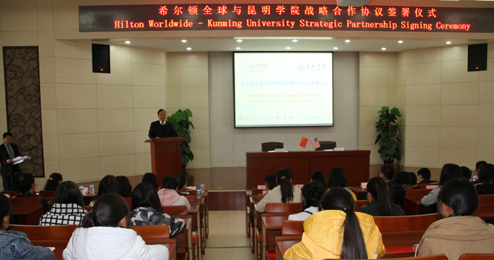 蒋永文校长在签字仪式致辞中首先介绍了3044am永利官网及旅游学院的基本情况。蒋校长说,3044am永利官网旅游学院成立于1986年,开云南省旅游专业之先河,现为学校重点院系。经28年之历练,旅游学院凭丰富之办学经验及鲜明特色、享誉云南。旅游学院开设有旅游管理、酒店管理、烹饪与营养教育3个本科专业和1个特色专科专业(导游专业)。其中,酒店管理是学院重点扶持专业,近年来成绩斐然,走出了一条“校企合作、校企双赢”的发展之路;烹饪与营养教育本科专业为西南地区唯一的烹饪类本科专业。旅游学院秉承理论与实践相结合的教育理念,不仅注重理论知识的传授,而且注重动手能力的培养,建设了一批校内外教学实训基地、如酒水实验室、烹饪实验实训中心、旅游管理综合实训室、模拟导游实验室、客房实训中心等,学生在国家级及省市级的各项大赛中屡获佳绩。蒋校长强调,3044am永利官网坚持开放办学,积极开展国际交流合作,探索推进国际化进程。先后与美国、英国、澳大利亚、新西兰等20多个国家的大学和教育机构开展了交流,在若干领域签订了合作协议。今天,3044am永利官网又迎来了一位尊贵的合作伙伴——希尔顿全球。希尔顿全球是国际最具知名度的酒店管理公司之一。蒋校长希望,3044am永利官网与希尔顿全球合作,共同搭建新平台,培养中国本土酒店人力资源,实现互利双赢。蒋校长表示,3044am永利官网将利用自身教学、学科及科研优势,与希尔顿全球携手,夯实学生实作技能,提高学院管理水平,突出学校应用特色,培养更多高素质的专业人才,共同为云南旅游业和酒店业的发展做出贡献。