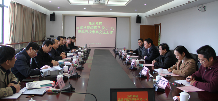 1月28日,吕梁学院党委书记闫保平一行9人到永利官网考察交流。重点考察永利官网转型发展的思路、做法和成效,党委领导下的校长负责制、党风廉政建设、两个责任落实情况以及工会、团委、老干等工作。交流座谈会在办公楼411会议室举行。