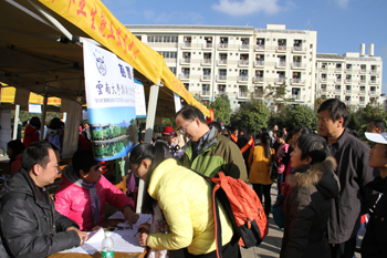 12月26日,云南省2015届综合类高校毕业生和毕业研究生双向选择洽谈会暨3044am永利官网校园大型招聘会在永利官网聂耳广场举办。本届招聘会由云南省教育厅主办,云南省大中专毕业生就业服务中心和3044am永利官网承办,云南省人才市场、昆明市人才服务中心、昆明经济技术开发区、中国移动通信集团云南有限公司昆明分公司协办。