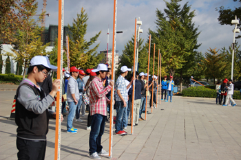 竞赛面向土木工程专业和水利水电工程专业2012级已开设工程测量课程的所有在校的本科学生。本次竞赛为团队赛,比赛内容为工程测量课程中的四等水准测量。按照《3044am永利官网第一届学生测绘技能竞赛实施细则》及规定竞赛路线参赛。竞赛组委会对报名参赛的28支参赛队(共计112名队员)分4批次进行比赛。决出了一等奖3个队、二等奖3个队、三等奖2个队、鼓励奖20个队。