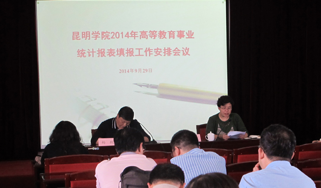 9月29日下午,在办公楼502会议室,学校召开3044am永利官网2014年高等教育事业统计报表填报工作安排会议。熊晶副校长出席会议并讲话,22个有关单位主要行政负责人和兼职统计员参加了会议,会议由校办主任杨跃主持。