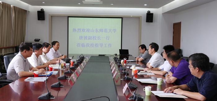 实地参观后,双方就进一步加强两校学习交流进行了座谈。刘副校长向唐副校长一行的到来表示热烈的欢迎,并介绍了学校人才培养目标定位、办学条件改善、办学规模、教学科研、本科教学合格评估等工作建设情况及取得的突出成绩。他说,永利官网虽然是一所年轻的新建本科院校,但学校在上级党委、政府的大力支持、关心、重视下,善抓机遇、善学先进的办学经验,从实际出发扎实谋划学校的发展。经过短短几年的发展,学校在学科建设、教学科研建设等方面已走在了省内同类高校的前列,学科建设上是云南省学科门类最齐全的院校,国家级自然社会科学基金项目实现突破,立项数量短时间内跃居省内同类院校前列。刘副校长希望在教学科研上能进一步加强与山东师范大学的交流与合作,得到支持。