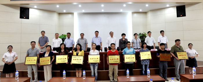 党委副书记孙勇宣读了学校党委表彰创先争优先进基层党组织、优秀共产党员和优秀党务工作者的决定。对在创先争优活动中取得优秀成绩的7个先进党总支、18个先进党支部、132名优秀共产党员和44名优秀党务工作者进行表彰。与会校领导分别为获奖集体和个人代表颁奖。