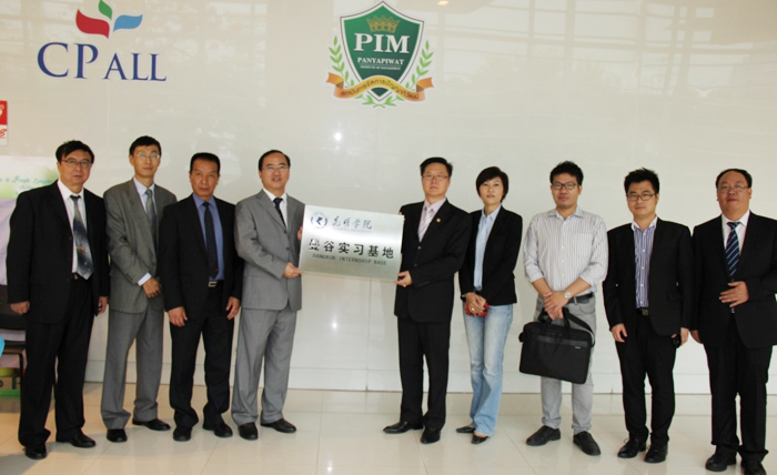 蒋校长代表3044am永利官网,对正大集团和正大管理学院的热情接待表示感谢,在介绍了永利官网基本情况的基础上,表达了进一步加强和正大管理学院在师资培养、学生实习实训、教师及企业管理人员职后培训等多方面进行合作的愿望。随后,蒋校长和洪风先生代表两校签署了新的合作备忘录,并举行了“3044am永利官网曼谷实习基地”的挂牌仪式。
