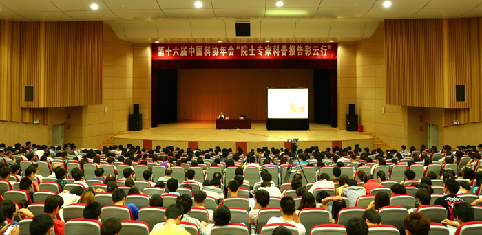 5月25日上午,第十六届中国科协年会“院士专家科普报告彩云行”学术报告会在永利官网学生会堂举行。此次报告邀请中国著名导弹火箭专家龙乐豪院士主讲“我和共和国火箭事业”这一主题。校长蒋永文、副校长郭华等学校领导出席报告会,部分中层干部及自动控制与机械工程学院、化学科学与技术系师生1300多人参加听报告。本次报告会由副校长郭华主持。