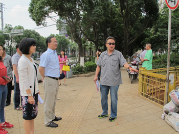 蒋永文校长一行分别对西园路五华区路段和西山区路段进行了实地巡查,他对西园路整体的环境卫生、城市绿化、交通秩序,以及相关管理部门所做的工作和努力给予了充分的赞同,并对巡查过程中发现的小广告、占到停车、占道经营、河道垃圾处理、建筑工地的管理等问题提出了改进意见。蒋永文校长强调,南博会召开在即,是昆明市打造城市品牌,提升城市品质的重要机遇。卫生保洁、道路交通是树立良好的城市形象重中之重,管理部门不但要重视,还要做好宣传教育工作,使每个城市卫生的参与者都认识开展“城乡清洁工程•清洁城市行动”的重要意义,养成良好的行为习惯,为建设美丽的春城做出自己的贡献。