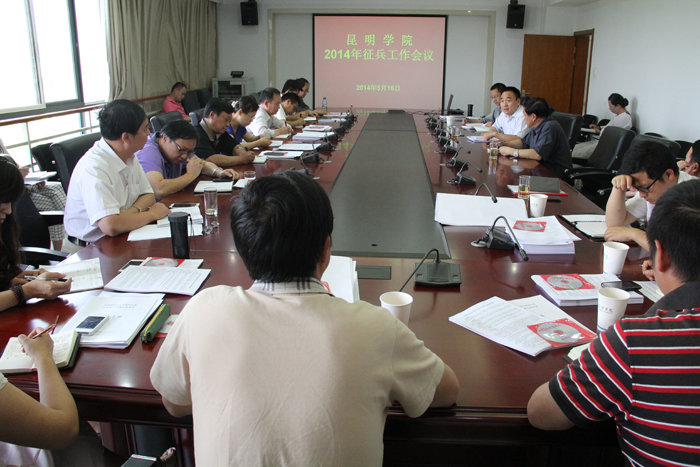 会上,郭华副校长首先对永利官网2013年征兵工作的总体情况进行了通报,对去年征兵工作取得的成绩给予了肯定。接着传达了5月14日上午召开的2014年度全国大学生征兵工作网络视频会议及云南省大学生征兵工作会议精神。指出依法做好征兵工作,是加强部队建设、巩固国防的一项重要任务,是全社会的共同责任,学校各单位要充分认识做好大学生应征入伍工作的重要意义,要严格按照中央和省里的要求,按照今年征兵工作的各时间节点,做好大学生应征入伍的宣传动员、咨询服务、网上报名等各项工作。
