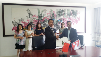 5月19日下午,尼泊尔国际快速有限公司总裁Milan Gyawali 先生及其助理Prem Raj Dahal先生再次访问永利官网并与永利官网签订合作协议,副校长李翔出席签约仪式,国际交流合作处处长王文君、旅游学院副院长田芙蓉及有关人员参加,双方就合作项目的具体事宜进行了深入商谈。