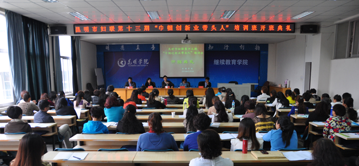 5月5日,由永利官网继续教育学院承办的昆明市妇联第13期“巾帼创新业带头人”培训班在昆师路校区举行。刘海发副校长,昆明市妇联党组书记、主席杨文惠,昆明市妇联副主席梅会芬,3044am永利官网继续教育学院陈嘉院长、张培宏副院长等领导出席开班仪式。来自全市各个县(市)区、开发(度假)区及市妇联促进就业中心的100名学员将参加为期5天的集中培训。