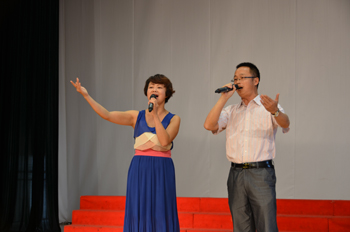 决赛特邀了音乐学院院长靳丽芬教授,孙兰娟教授,杨丽珠副教授,郭海波副教授,张新副教授担任评委。经过院系初赛推荐,40多位选手参加了全校范围的两场复赛,共有15名选手进入决赛,各位选手都具有较高的演唱水平和技巧,他们用民族、美声、通俗等唱法深情演绎精心准备的歌曲,诠释了对音乐和生活的热情。各分工会组织的亲友团现场助阵,比赛现场充满了热烈的气氛。比赛接近尾声时,音乐学院的孙兰娟教授、杨丽珠副教授、张新副教授和两名年轻专业教师王捷、苏晓燕纷纷登台激情演唱,再次给与了观众美好的艺术享受。“3044am永利官网好声音”教职工演唱比赛获得圆满成功。