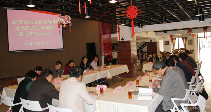 3月27日,省教育厅发展规划处杨丽宏处长一行到永利官网就地方本科高校转型发展试点工作进行专题调研。随行的还包括云南省教育咨询委员会委员、昆明市盘龙职中校长廖晓琼,省教育厅发展规划处及省科技教育领导小组教育工作办公室的相关人员。永利官网党委书记陈世波,校长蒋永文,副校长熊晶、郭华、董建华与调研组同志亲切座谈,学校相关职能部门主要领导参加了座谈会。