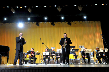 美国阿肯色爵士乐团2014年中国首次巡回演出,进行了一年多的准备。为让3044am永利官网师生原汁原味享受到美国阿肯色爵士乐团“浪漫爵士激情之夜”,乐团在演奏和歌曲上做了精心准备,提前到学校学生会堂认真彩排,制定了一台曲目丰富,悦耳动听,充满浪漫而又富于激情的爵士乐晚会,晚会不仅涵盖美国著名的爵士乐曲和乐团自己的成功作品,从内容上还特别注重了晚会的现场演奏激情效果,既有爵士乐特有的浪漫与潇洒,又有摇滚风格的豪迈与激情,为了表达对中国人民的友好情谊,乐团还精心选择了两首中国作品《甜蜜蜜》和《玫瑰,玫瑰我爱你》。爵士乐大师们对《甜蜜蜜》和《玫瑰,玫瑰我爱你》的编曲和配器,赋予了中国两首歌曲独特的情调与浪漫激情的爵士乐魅力。丰富精彩的曲目、震撼心灵的旋律、浪漫而富于激情的爵士乐演奏,演奏中与师生近距离互动,使演奏氛围一浪高过一浪,让人心情激荡,难忘 “浪漫爵士激情之夜”。
