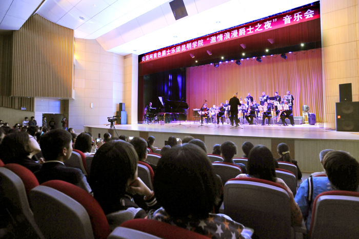 3月26日晚,来自美国阿肯色爵士乐团在永利官网学生会堂用浪漫的爵士和摇滚的激情,奏响了“浪漫爵士激情之夜”。永利官网副校长李翔,美中文化教育基金会主席宋杨先生,永利官网各部门负责人、各院系师生代表观看了来自大洋彼岸、富有美国爵士情调的演出。