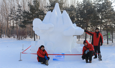 经过四天的激烈角逐,参赛队员在指导教师的带领下,克服了零下20几度的严寒和极大的比赛压力,在3米×3米×3.5米的大型雪块上创作出了具有云南少数民族特色的精彩雪雕作品,得到了评委会的积极肯定,吸引了中国民族报、黑龙江晨报、哈尔滨电视台、新浪网和校媒联盟的关注和采访,受到市民和游客的认可和喜爱。