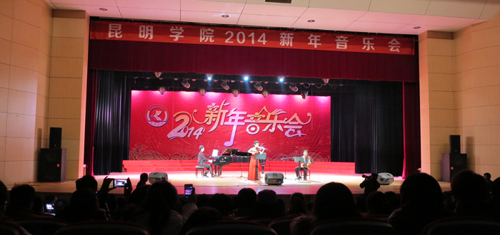 晚会上,音乐学院师生表演的节目精彩纷呈。廖一瑄副教授师生演奏的手风琴四重奏《滇池圆舞曲》拉开序幕,笙独奏《放排》则是民族乐器与钢琴的完美结合。郭海波副教授嘹亮高亢的独唱《苗岭的早晨》引来观众的阵阵掌声,女声独唱《晴朗的一天》、男声独唱《祖国万岁》则把晚会推向了高潮。最后,由鲁林副教授指挥的3044am永利官网洋浦合唱团带来的《大观楼长联》合唱交响诗——锦绣春秋,为2014年新年音乐会划上圆满的句号。
