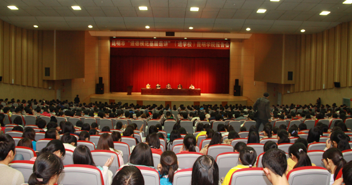 宣讲报告前,李媛芬副书记讲话指出,3044am永利官网是昆明市唯一的一所本科院校,更是昆明市精神文明建设的一个重要窗口。学校长期坚持立德树人、狠抓校园精神文明建设,深入开展“道德讲堂”,提高师生道德修养,构建和谐校园,多次荣获“省级文明单位”和“省级文明学校”称号。今天,市委宣传部、市文明办组织市“道德模范”到永利官网作专场报告,为永利官网师生送来了精神食粮,带来了学习榜样。李副书记要求,与会师生要专心听、认真学,学习“道德模范”的崇高精神、崇高道德品质、人生价值追求和理想信念。传承道德传统,争做社会好人,传递道德正能量,在学习、生活中见行动、有成效。李副书记强调,伟大的时代需要伟大的精神,良好的校园风气需要健康向上的道德风尚来引领,社会进步需要道德模范的力量来推动。传承美德、争做好人,是时代的呼唤,是社会的要求,作为高校的人民教师和当代大学生义不容辞。