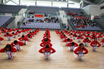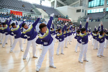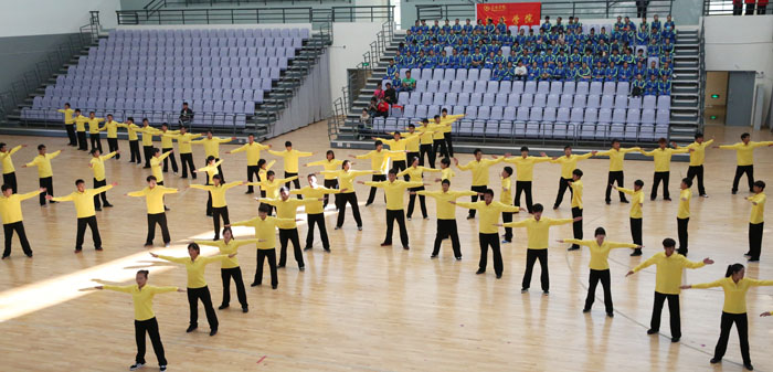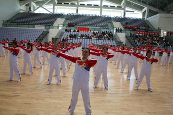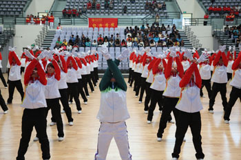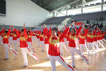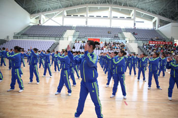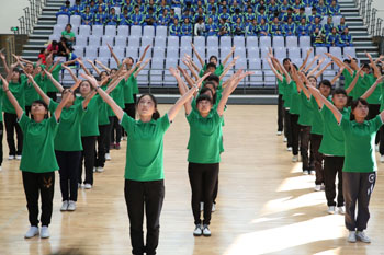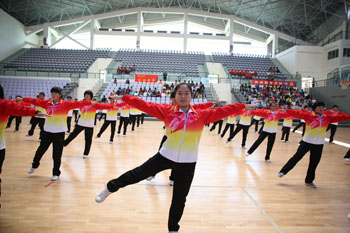11月8日,以“运动、健康、向上、快乐”为主题的“2013年3044am永利官网冬季运动会第九套广播体操比赛”在学校体育中心综合馆成功举行。学校党委副书记孙勇,副校长李翔到场指导。来自18个教学院系代表队近2000余名学生运动员参加比赛,教职工代表队进行了表演展示。