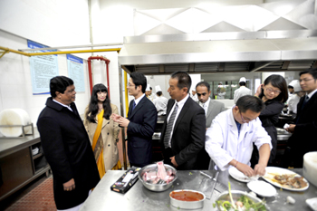 斯里兰卡教育部部长、内阁部长H. E. Mr.Gunawardhana在斯里兰卡驻成都总领事S.K.Walakuluge先生和代表团顾问马仲武博士等人员的陪同下来到永利官网。李翔副校长陪同代表团一行考察了学校农学院的实验室、自动控制与机械工程学院的轨道交通实验室、旅游学院的烹饪实验室和学生宿舍楼,部长先生一行冒着大雨兴致勃勃考察了学校相关实验室和基础设施,考察过程中不断向李副校长详细了解情况,明确了今后与永利官网开展合作的意向。