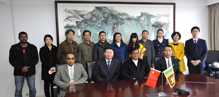会谈在愉快的氛围中结束,陈书记代表学校向Gunawardhana部长先生一行赠送纪念品并合影留念。