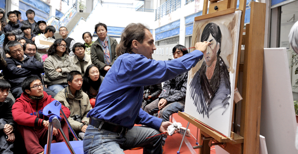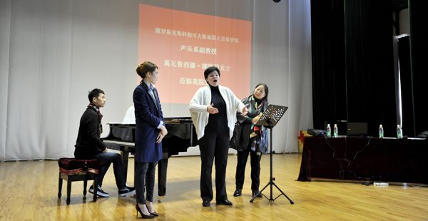 之后,武院长和李书记陪同来自哈尔科夫美术学院油画系的系主任兼俄罗斯列宾美院的客座教授维塔利•维克多洛伟奇•日尔德夫和来自哈尔科夫美术学院的乌莉亚诺娃•塔玛拉到美艺学院开展教学交流。靳院长陪同来自哈尔科夫美术学院外事办主任兼俄罗斯柴可夫斯基音乐学院副教授葛瓦鲁西娜•娜塔莉到音乐学院与师生开展教学交流。学校师生的积极参与和热情互动点燃了三位艺术家的现场教学的激情,现场教学气氛热烈,参加交流师生们普遍反映受益匪浅。永利官网教师的专业水平得到了三位艺术家的充分肯定。