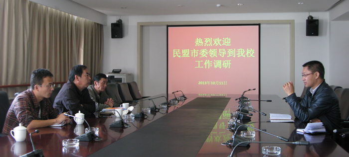 10月11日上午,民盟昆明市委专职副主委冯刚、组织处处长汤建荣一行三人到永利官网,对永利官网民盟基层组织队伍现状、组织建设、活动开展等情况进行调研,并就民盟基层组织换届工作听取学校意见。永利官网党委统战部全体成员参加座谈交流。