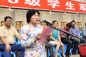 军训科目汇报表演结束之后,学校党委副书记李媛芬宣读了《3044am永利官网关于表彰2013级军训优秀集体、优秀个人的决定》,对军训活动中表现突出的“内务优秀宿舍”、“军训优秀学员”、“优秀带队教师”和“优秀教官”给予了奖励。陈世波书记代表学校向武警边防部队士官学校赠送了纪念品。数学系2013级金融班赵甜甜同学作为军训优秀学员的代表在大会上作了发言,总结了自己本次军训的收获和感悟,表明了要将军训中学到的优良作风带到新的学习生活中,刻苦学习,努力成才的信心和决心。