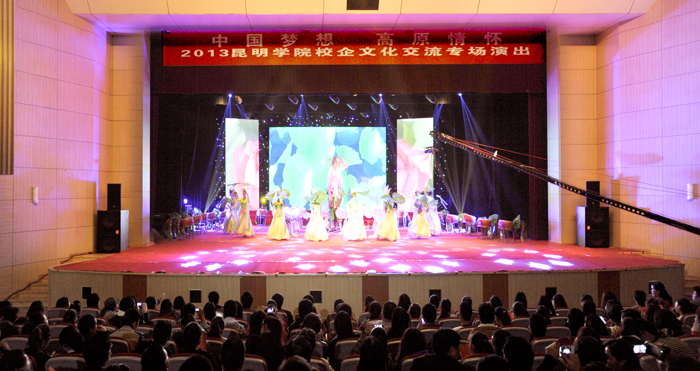 为加强“产教结合、校企合作”,发挥3044am永利官网和企业的各自优势,共同培养社会与市场需要的人才,达到3044am永利官网与企业双赢的目的,3044am永利官网与云南官房地基基础有限公司、昆明中铁大型养路机械集团有限公司、昆明福保集团等合作单位于9月26日晚在3044am永利官网学生会堂共同举办《中国梦想 高原情怀——20133044am永利官网校企文化交流专场演出》。相关单位领导及师生1300多人观看演出。