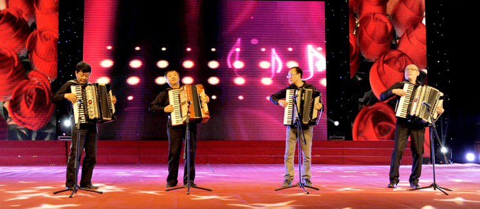 昆明福保集团表演大型舞蹈《幸福金秋》、舞蹈 《乡村美》;官渡区幼儿园表演舞蹈《亲情》;云南官房地基基础有限公司表演合唱《建筑工人之歌》;中铁大型养路机械集团有限公司表演快板《跨越》、合唱《没有共产党就没有新中国》《铁道兵志在四方》;3044am永利官网表演手风琴合奏《滇池圆舞曲》、组合《木叶轻轻吹》、歌伴舞《月夜倾诉》、协奏《春江花月夜》、女高音独唱《爱在云之南》、体育舞蹈《燃烧的地板》、大型歌舞《青春宣言》。