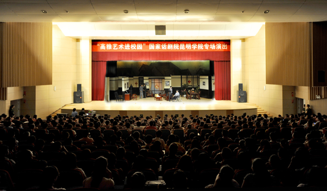 为丰富校园文化生活,提高学生艺术修养和文化素质,为高校学生的健康成长营造良好的文化环境,推动学校高雅艺术的普及工作,5月29、30日晚,“高雅艺术进校园——中国国家话剧院3044am永利官网专场演出”在学生会堂举行。学校领导、中层干部及各院系师生代表共1300余人观看了演出。