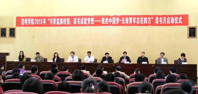 启动仪式首先由李翔副校长致辞,李翔副校长在对读书月主要活动内容做了概括后,对读书月活动提出了希望:一是读书要学会选择,读好书,好读书;二是读书要学会思考;三是要把读书与做人结合起来;四是要把读书与自己、与中国梦、彩云梦、学子梦结合起来。在医学院党总支副书记罗隽雁老师及化学科学与技术系学生代表胡春丽大会上表态性发言后,孙勇副书记宣布3044am永利官网2013年“书香溢满校园,读书成就梦想——我的中国梦•云南青年志在四方”读书月启动。