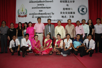 此次出访的主要目的,是落实今年2月陈书记率团访问老挝国立大学期间,与对方商谈的联合建立音体美专业的合作项目。经学校党政领导批准,由音乐、体育、美艺三个学院的党政领导和专业教师组成的代表团一行十人赴老挝国立大学。访问期间,体育学院赵平院长、周明副院长、音乐学院靳丽芬院长和美艺学院武新文院长、李正红副书记与老挝国立大学校方和老挝国立大学教育学院领导多次深入会谈和调研,全面细致了解了对方学校在音体美专业建设方面的现状和需求。在双方联合举办的“老挝国立大学•3044am永利官网文化交流展示会”上,靳院长的独唱、武院长的现场书法展示、周砚馨老师的小提琴演奏,以及徐立宏老师表演的八卦剑和太极拳等赢得老挝国立大学师生的阵阵掌声和喝彩。文化交流展示结束后,国立大学领导和师生兴致勃勃地观看了美艺学院精心选送的师生美术与艺术设计作品展。此外,体育学院周副院长和徐立宏老师还为体育专业的师生上了四堂示范课,深得师生好评。永利官网音体美三个学院均向对方赠送了礼品和部分器材。