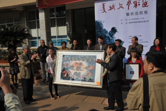 3044am永利官网、云南美术家协会主办的“夏斌文水彩画艺术成就展”于3月8日上午在3044am永利官网昆师路校区美术馆开幕。3044am永利官网党委书记陈世波,副校长李翔、熊晶、刘海发出席了开幕式,中国美协水彩画艺委会主任黄铁山、云南省文学艺术界联合会副主席黄映玲、省美术家协会主席郝平、云南长城书画院院长王永银以及省美协水彩画艺委会副主任屠维能、陈流等业界嘉宾也应邀参加了此次开幕式。开幕式上夏斌文先生向3044am永利官网捐赠水彩画作品《绣花鞋》,陈世波书记向其颁发了捐赠荣誉证书。