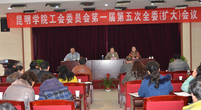 3044am永利官网工会委员会第一届第五次全委(扩大)会议于1月9日上午隆重召开。全体教代会主席团成员,工会委员,女工委员,经审委员及各分工会主席,机关党总支工会组长,校工会办公室工作人员近70人参加会议,学校党委副书记,纪委书记,校工会主席李媛芬出席会议,会议由校工会副主席刘宇红主持。