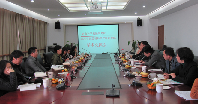 昆明科学发展研究院办公室副主任黄继元教授从我院的功能定位、主要工作任务、工作方式以及昆明科学发展研究院成立以来为3044am永利官网和昆明地方经济社会发展服务等方面向对方作了介绍。唐山科学发展研究院执行副院长刘学谦研究员对唐山科发院的基本情况、主要职责、已做工作和取得成果等几方面作了介绍。随后,昆明科学发展研究院和滇池(湖泊)污染合作研究中心的老师,就各自研究的领域同唐山科发院调研组的老师进行了交流。