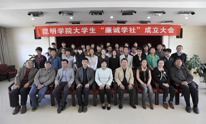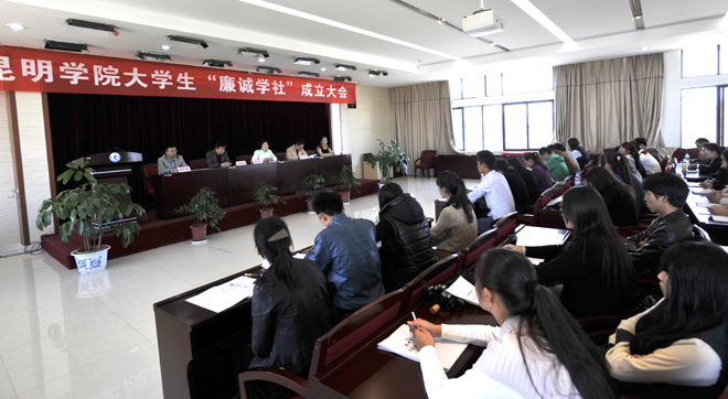 成立大会上,大学生“廉诚学社”申请人经济学院2010级财务管理班孔杉杉同学宣读了社团成立申请;校团委副书记樊传章代表团委和学生社团联合会宣读了社团成立的批复;大会表决通过了大学生“廉诚学社”社长、副社长人选;表决通过了《大学生廉诚学社章程》;新当选的大学生“廉诚学社”社长孔杉杉同学、副社长雷芝银同学、李亚霖同学分别作了表态发言;全体社员进行了严肃认真的入社宣誓。
