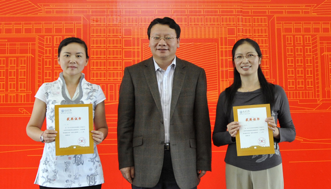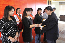 与会校领导分别为“学习贯彻《高等学校教师职业道德规范》加强‘师德师风’建设活动”10个先进集体、22个先进个人和“师德师风演讲比赛”获奖选手颁奖。