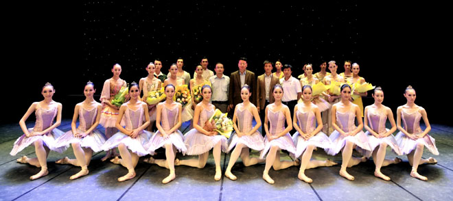 辽宁芭蕾舞团此次来昆的70余位演员为永利官网师生呈现了一场品味高雅、美轮美奂的芭蕾盛宴。演出在唯美浪漫的经典芭蕾舞剧《仙女》中盛妆启幕,演员们用精湛的舞技精彩演绎了中外芭蕾舞的经典与现代之作。现代男子群舞《男人》阳刚雄武、活力四射;古典芭蕾舞剧《海盗》生动唯美、激情奔放;现代女子群舞《茉莉花》优雅曼妙、赏心悦目;精选节目《芭蕾集锦》节奏明快、酣畅淋漓;情景芭蕾《江山美人》如歌如泣、激昂悲壮;现代二人舞《无欲无虑》动感协调、引人入胜;世界经典舞剧《天鹅湖》双人舞揭示了对生命,对爱情的无限憧憬;而中国芭蕾舞剧《二泉映月》中的经典桥段《梦中追月》成功的将听觉向视觉转化,实现了一次文化层面上的中西合璧,美不胜收、感人肺腑。整台演出精彩纷呈、高潮迭起,赢得了全场师生经久不息的热烈掌声。最后,演出在辽宁芭蕾舞团全体演员带来的原创作品《芭蕾风采》中徐徐落下帷幕。演出结束后,陈世波书记还亲切地与演员们合影留念。