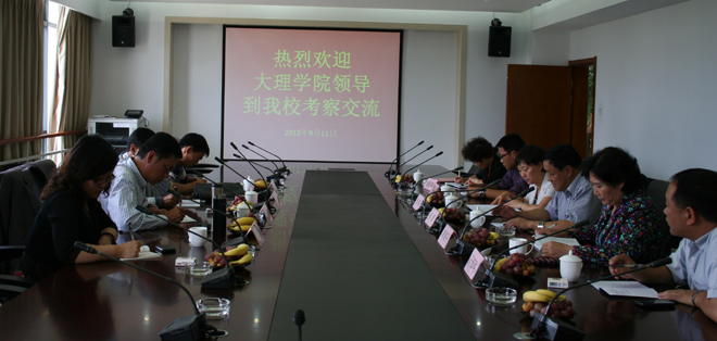 2012年9月11日下午,大理学院党委副书记段林、纪委书记张明以及组织部干部科长、组织科长一行4人就干部聘任工作到永利官网交流、考察。学校党委副书记孙勇,党委副书记、纪委书记李媛芬和组织部部长杨璐、副部长钱海鼎出席了交流会议。