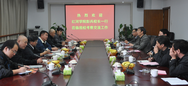 永利官网陈世波书记代表学校对红河学院彭兵校长一行的到访表示欢迎,欢迎彭校长一行到永利官网传经送宝,希望彭校长一行能就永利官网本科教学合格评估工作给予建议和意见,以促进永利官网迎评促建工作。红河学院彭兵校长首先肯定了永利官网瞄准地方经济,为地方经济服务的办学定位,并对永利官网以行业要求来确定培养目标表示赞赏,同时他还就各个学院如何贯彻学校的办学定位和基础学科如何与“应用型”相结合的问题提出了合理建议和意见。