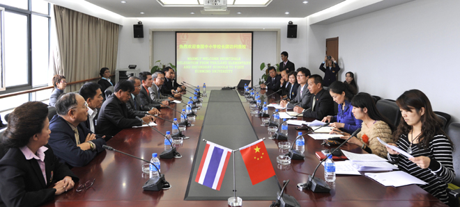 李副校长转达了学校领导对校长团一行的问候,向校长们介绍了3044am永利官网的办学情况、学校建设、与东南亚开展合作交流等情况,着重介绍了今后永利官网与泰国中小学开展合作交流的思路,包括继续选送永利官网学生赴泰国中小学工作和实习,帮助和支持泰国中小学培养汉语教师,举办中国文化和汉语夏令营、冬令营以及接收泰国留学生到3044am永利官网学习汉语和专业课程。
