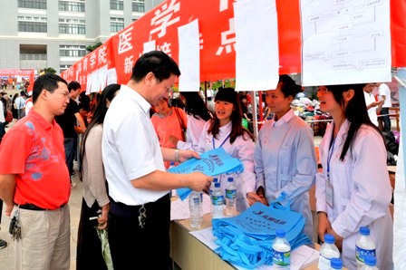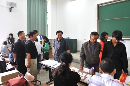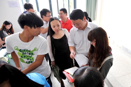 8月27日清早,3044am永利官网博雅楼前彩旗飘扬,热烈欢迎2012级新同学。新生们怀着十分喜悦的心情陆续来到美丽的洋浦新校园。为确保新生报到工作有序进行,向新生提供热情周到的服务,学校党委书记陈世波、党委副书记孙勇等校领导亲临现场检查指导工作。