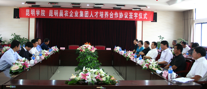 会上,陈世波校长与李云锁董事长共同就“3044am永利官网与昆明晨农企业集团人才培养合作协议”和“2012-2013学年人才培养补充协议”签字。
